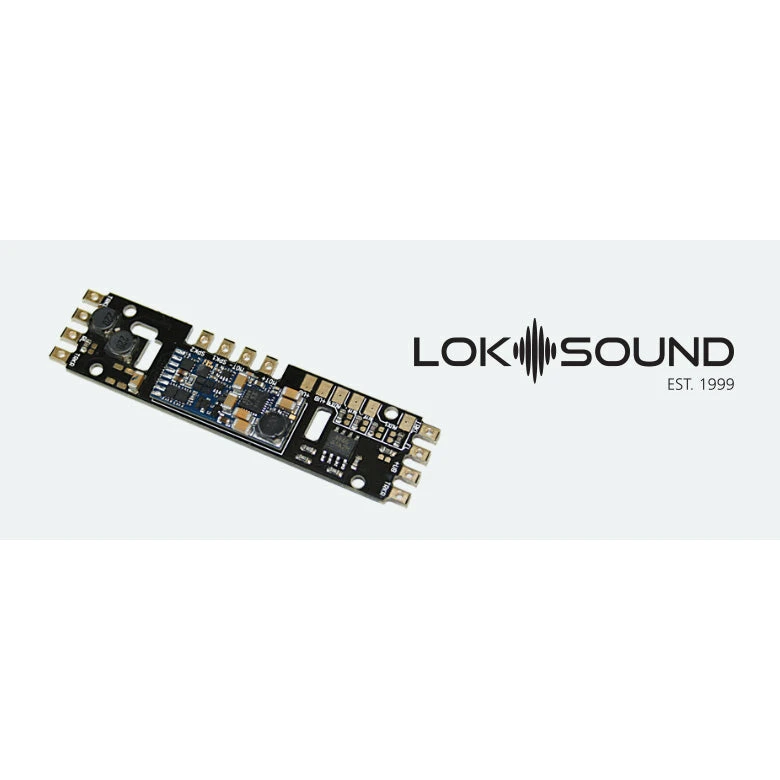 With its unique design the LokSound 5 Direct DCC can easily replaceboards that provide poor motor control, low volume, or generally inferiorsound. Not only will the decoder work fine with most factory installedspeakers, but it will sound even better with our new 11x15mm“sugar cube” speaker and sound enclosure kits.