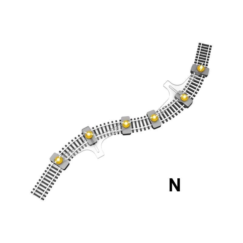 Flexible track is very useful but its tendency to straighten up makes track laying difficult unless it can be held in position.This new Flexible Track Holding Tool keeps your flexible track in the desired curve temporarily before fixing it permanently.You can even hold the track in your hands, off the baseboard, without it losing its curves!Suitable for all N scale tracks.Can be used with the N scale adjustable parallel track tool PT-N-01.