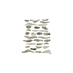31 rocks measuring 1 3/8″ – 4″ (3.49 cm – 10.1 cm) l x 3/8″ – 1 1/8″ (9.52 mm – 2.85 cm) h