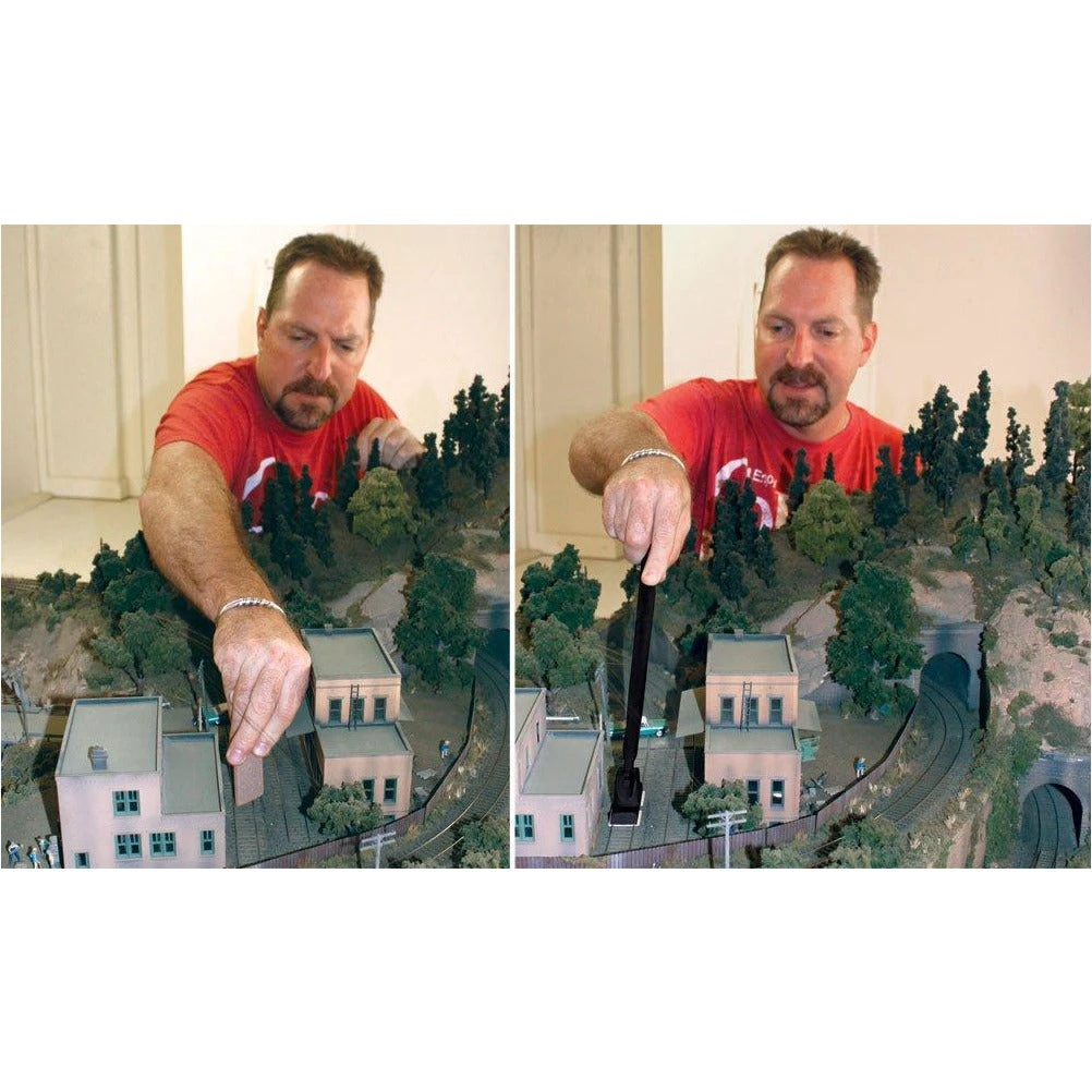 Kit includes all you need to clean and maintain your track. Package doubles as a tray for storage. Replacement pads available. Designed to work on N, HO, HOn3 and three-rail O scale track.