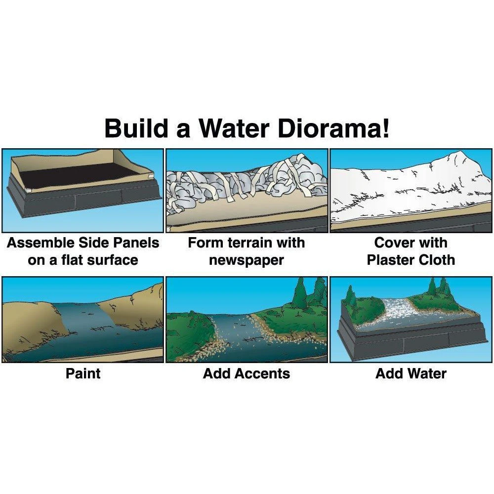 Create any type water area for your diorama. Kit includes everything needed to make waterfalls, ponds, rivers, rapids, oceans, waves, and more!
